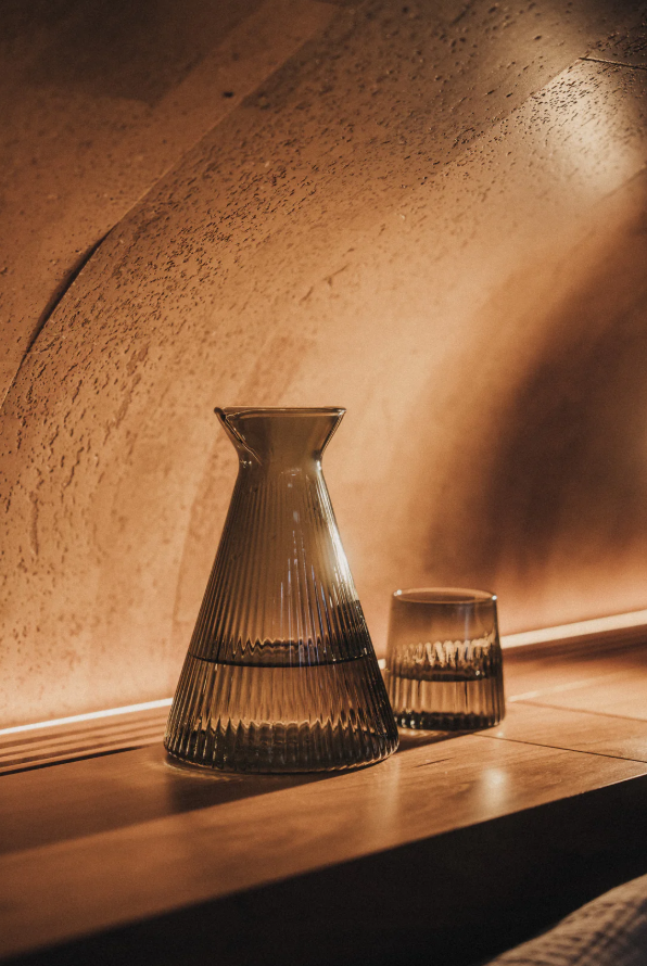 Introducing the Kairos Angular Carafe in a sleek smoke color. This functional tabletop essential is designed with unique ribbing details, adding character to your glassware collection. Pair with the Medium Water Glass, sold separately, for a complete set.