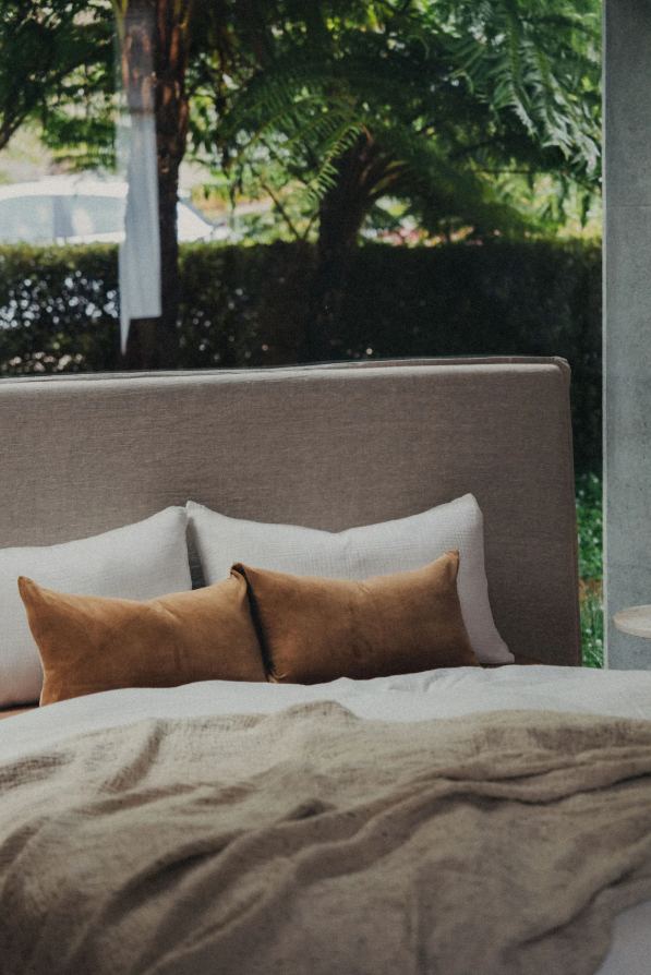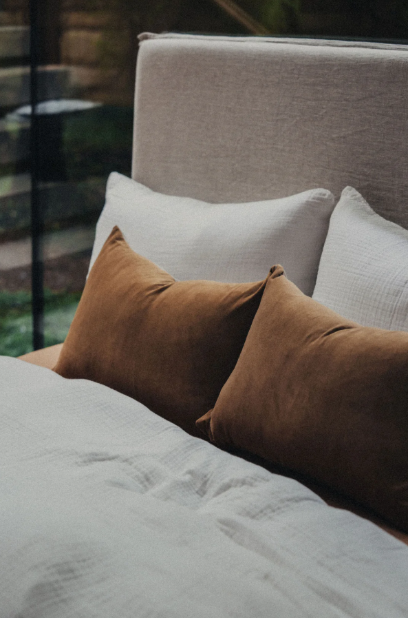 Linen/Velvet Cushion – Nutmeg