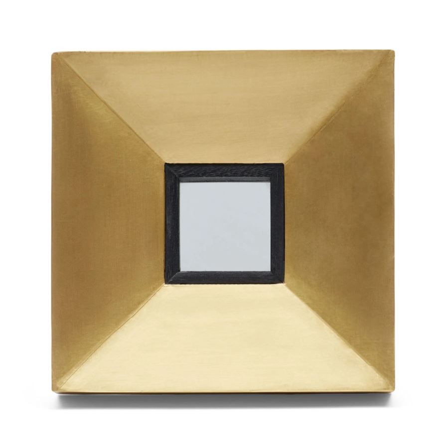The Namir Petit Mirror Wall Art brings a stunning geometric design to your wall d?cor. Handmade with brass cladding & black timber inner frame ? each piece unique – each piece unique with an eclectic vibe – these simple yet striking pieces evoke charm & interest. The internal mirror is 6×6 cm. Keyhole hanger on rear.